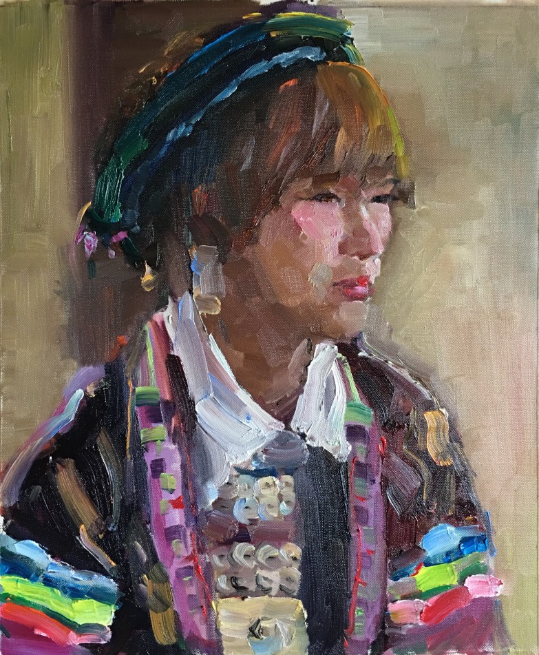 April 13, 2016. Oil on canvas. 30 x 40″ 貴卅從江縣翠里鄕高華村瑤族少女趙拾翠 25 years old The April 2016 rural area tour was supposed to be a plein air painting tour. But because Master Chan was not feeling very well he rather stayed indoor. Therefore our guide arranged the minority race people to be our human life painting… Read More