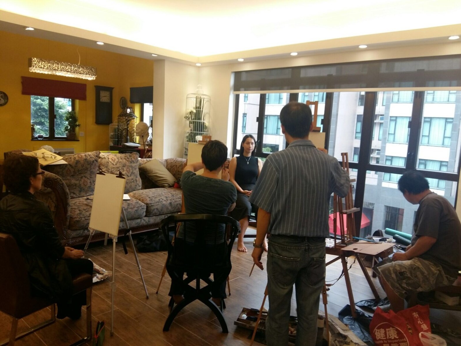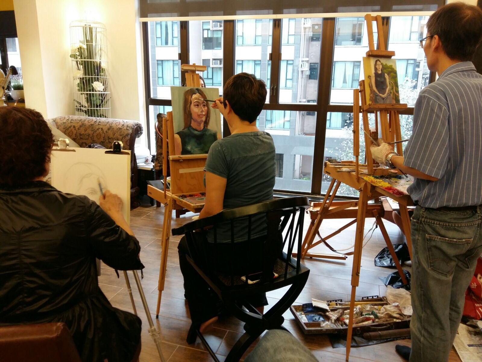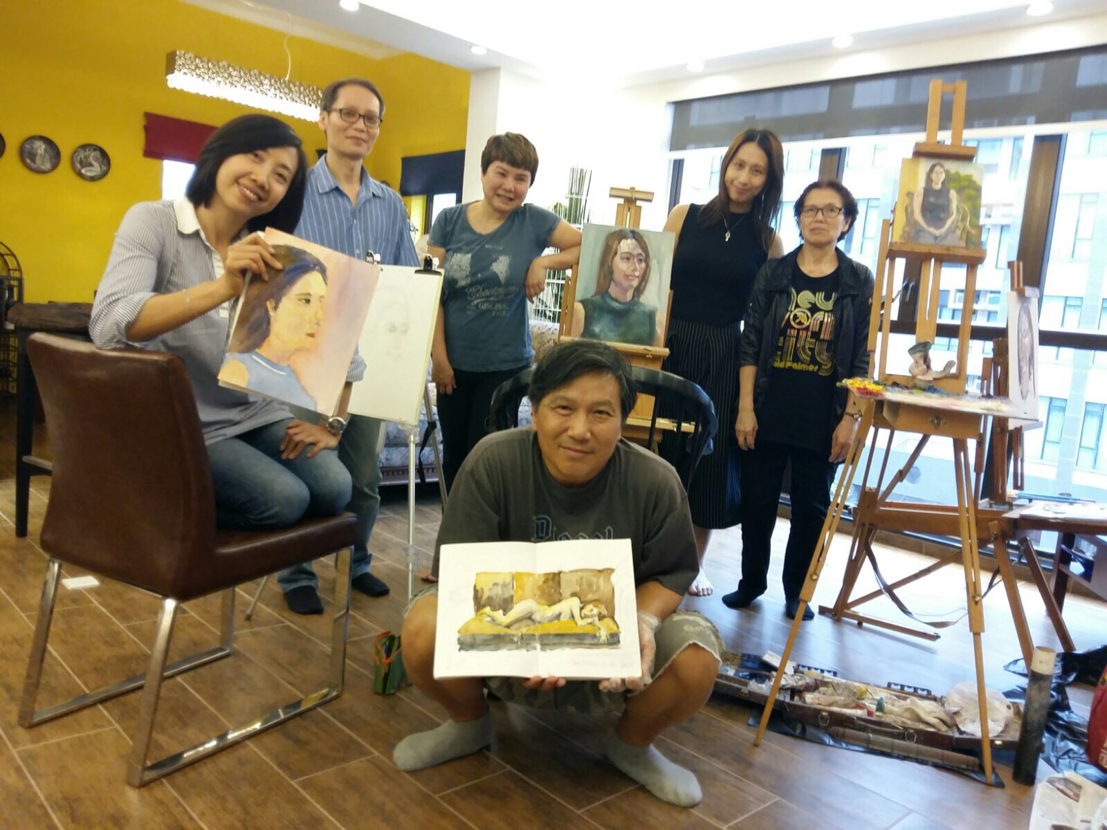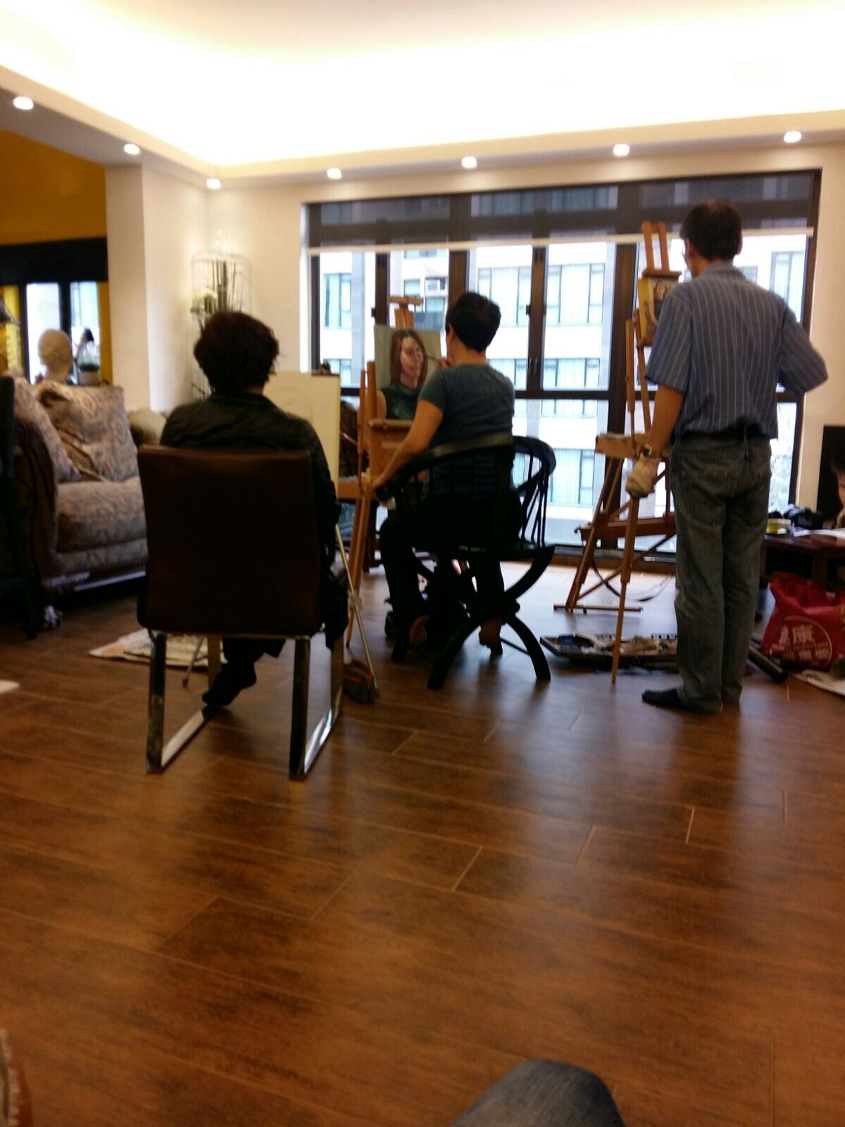 It was a friend’s home. She lived in an old British colonial apartment of 50 years. Surrounded by trees, with high ceiling and large windows, it set a good atmosphere for painting. That day we had invited 5 artist friends to visit her house where we had home made lunch, music, wine, sunshine, breeze and a great model who helped us with 3 hours nude modelling in the morning and 3 more hours portrait modelling in the afternoon.
