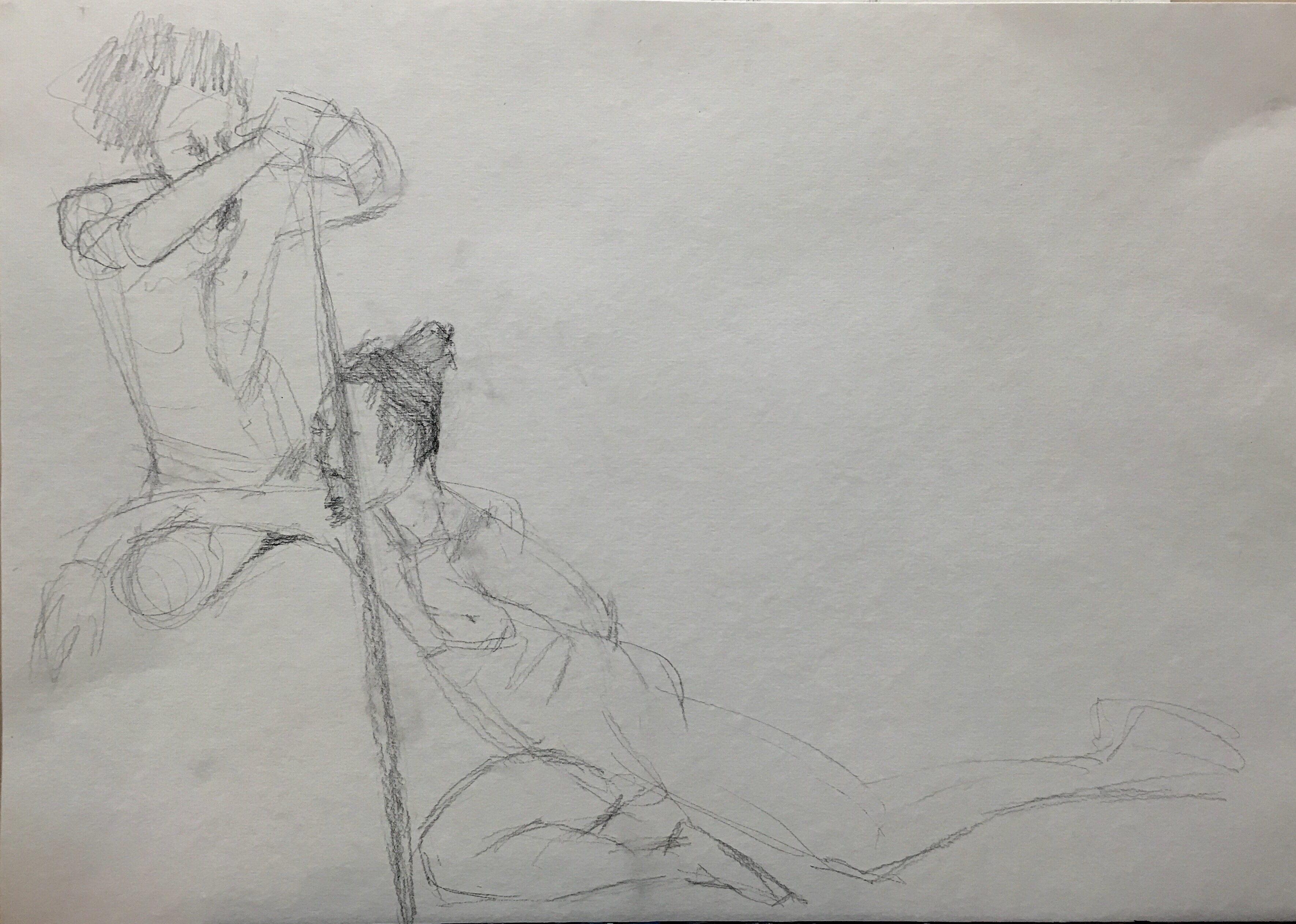 This first experience turned out to be a real delight surprise. I had drawn gwelio before, but this time, it was a double male model set up. One of the models was Philippe, a French artist with extraordinary slim and long limbs and Sei, a Japanese mixed who had a face like the ancient oriental warrior.