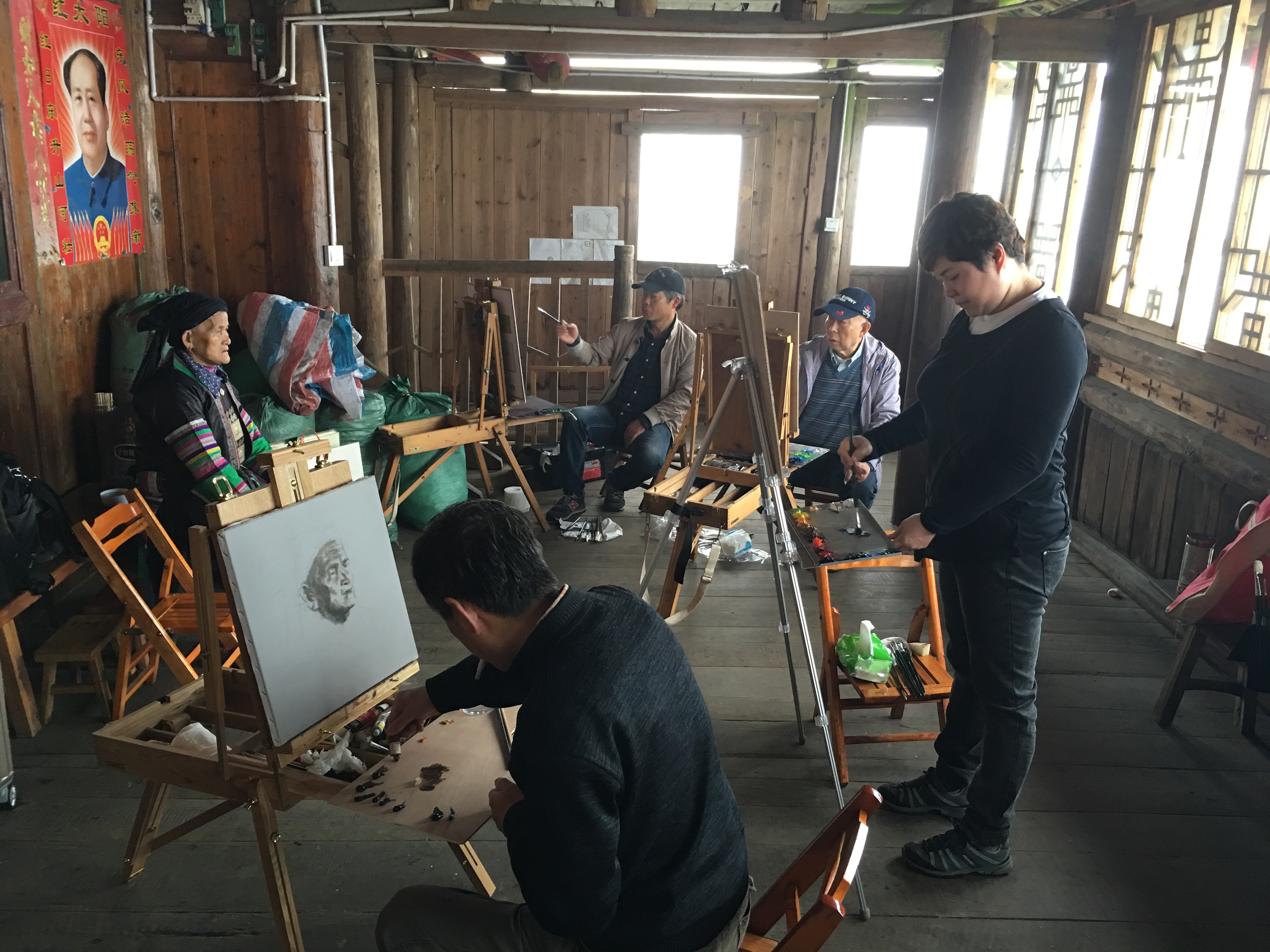 A larger painting group. We had 10 artists in the whole group. But most of them took photos instead of life painting. They called it 采風. I didn’t know the exact meaning. But seemed that this was a popular pre painting research work in China art circle. Therefore most of these trips were financed by their work related division. And artists treated these trips as part of their work.