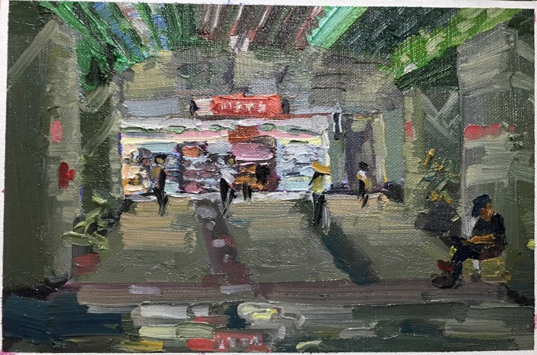 May 29, 2016. Oil on canvas. 18cm x 25cm. In Taipei Metro Station. I had a free day in Taipei. I invited my Taiwan friend to go painting with me. He was so nice to choose a place with shelter. Yet this day. In May. The temperature was unbelievable 36*C. We wished to settle down… Read More