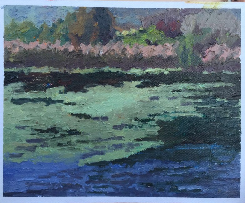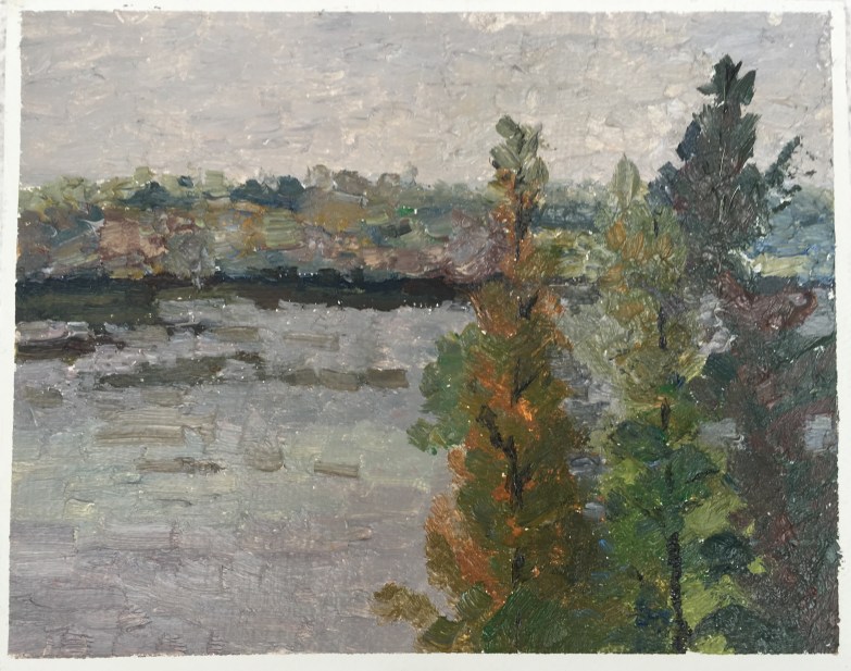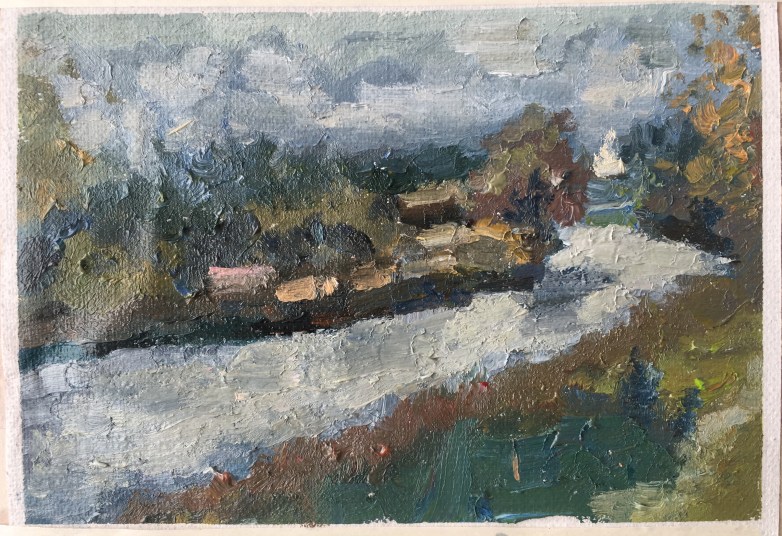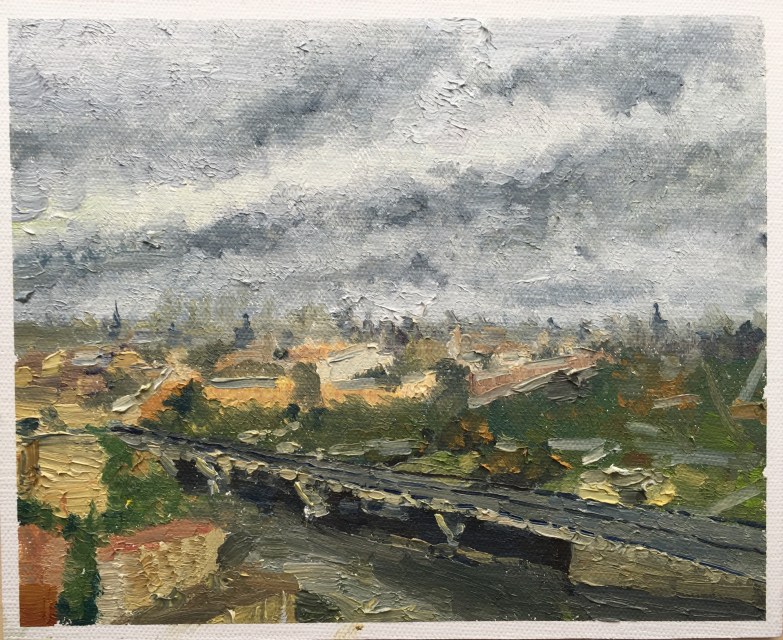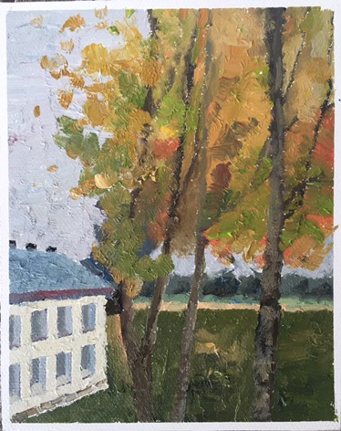 September 17, 2016. Oil on canvas. 25 x 35cm Russia. Moscow. 克林 I finished my fourth painting in 2 hours and decided to attempt the fifth one in an hour. It was almost sunset. The warmth of the sun had coated the trees in a kind of golden yellow green. I did this really fast,… Read More