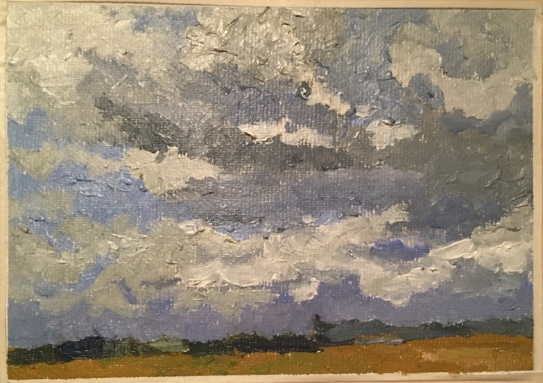 September 22, 2016. Oil on canvas. 15 x 20cm. Russia Sky had different colour and shape. The place we lived had a gray sky. When I went to Nepal or Tibet, the sky was a dark blue violet. In New Zealand the sky is a dark blue. I used to think the sky was a… Read More