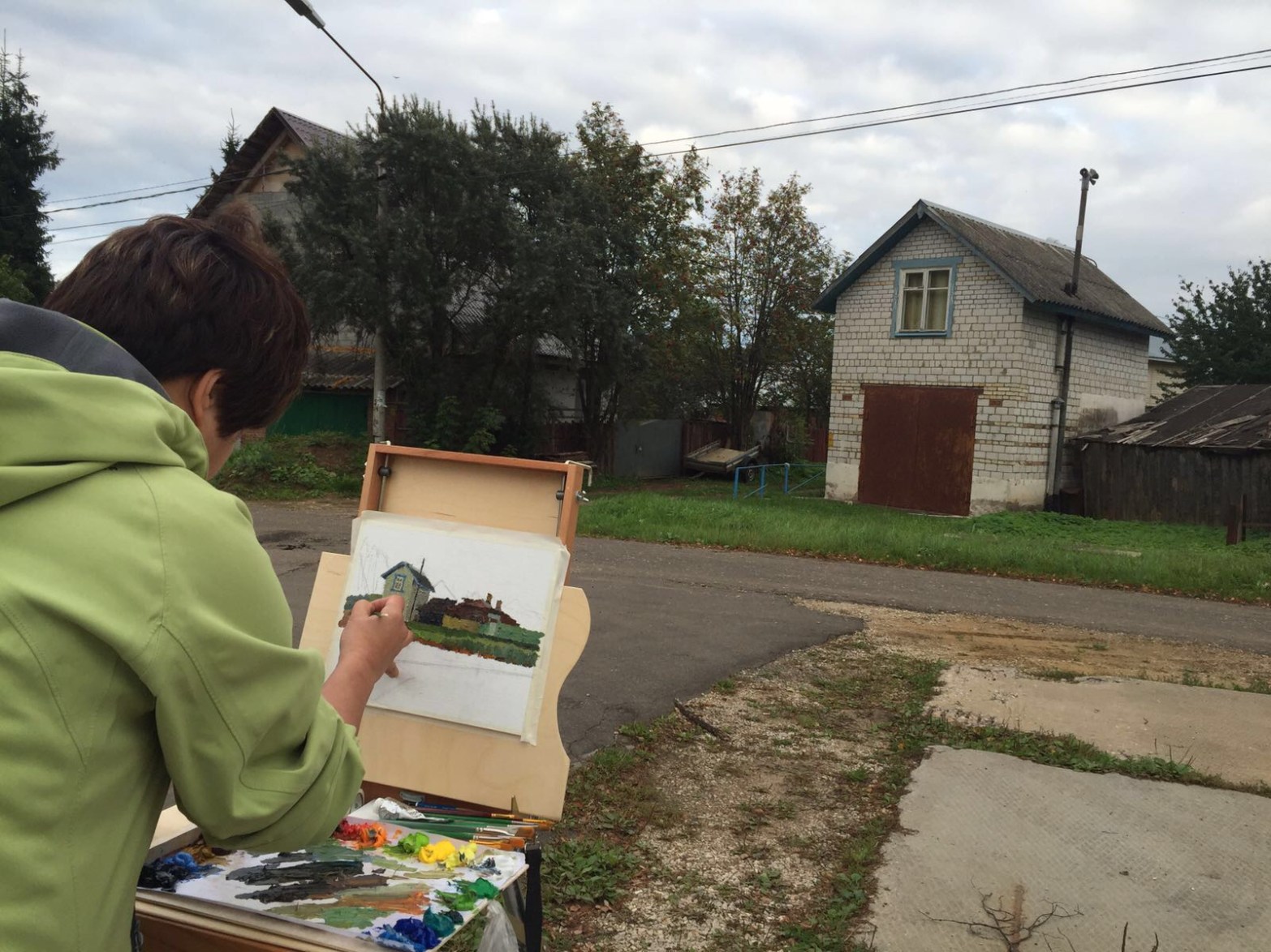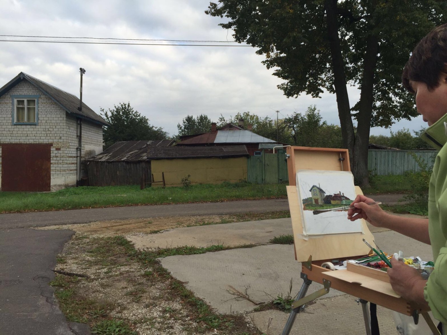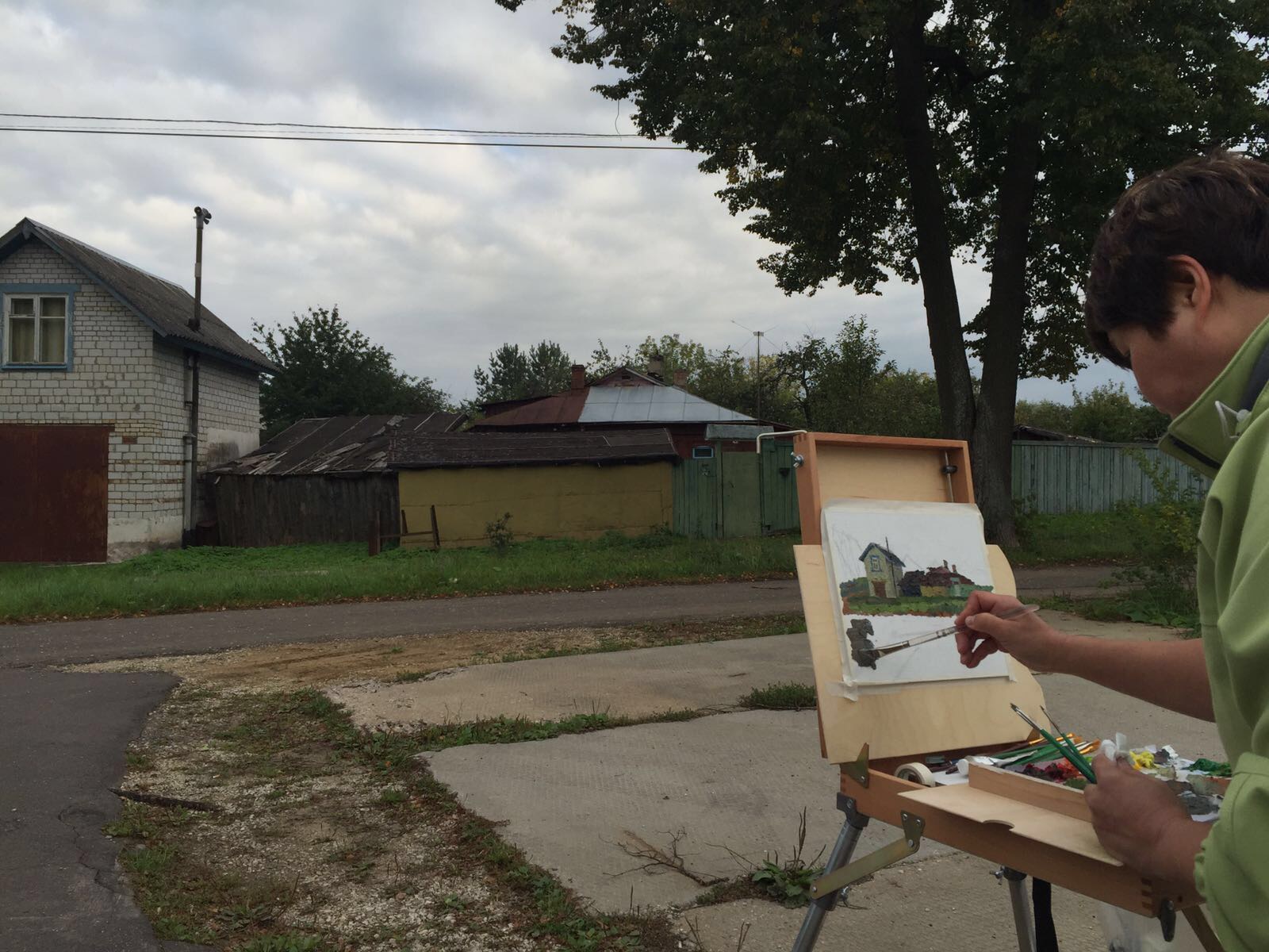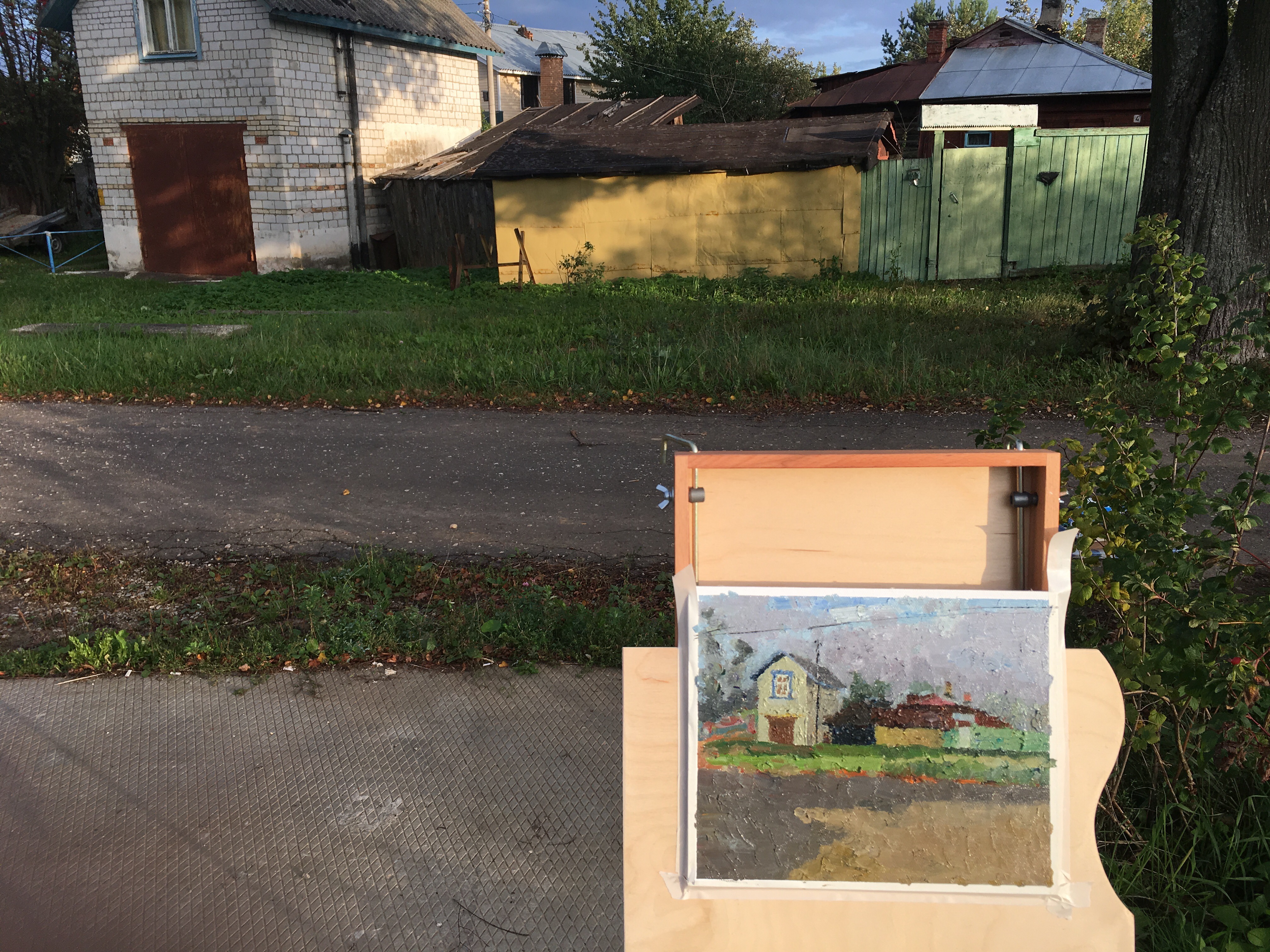 The first city we went was call 克林。We stayed in a hotel called Clever Hotel. Bigger room and well lit. My fourth plein air painting was done near Hotel Clever. We started at 3:30pm. It was a late afternoon and the air was cool. Like 9*. I painted 2 pieces until 6:30pm. It was bleeding! My right hand fingers could not move well.