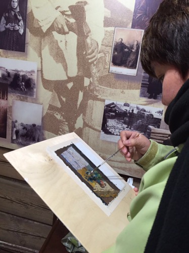 That was a cold rainy morning in a small town called 蘇茲達爾 near Moscow. Our group went on to sight seeing at a farm huts museum which I did not feel very attractive to me. Therefore I went out to the cool lake side to do my plein air painting.