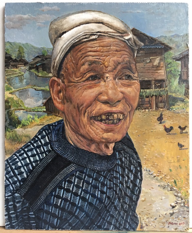 February 28, 2017. 21.5 x 27cm. Oil on canvas. This old man I met during my April trip to Guangxi boundary was one of its kind. Mentioned before I loved to travel to rural area undeveloped area poor area because I thought people there were genuine and adorable. But of course food was bad, accommodation… Read More