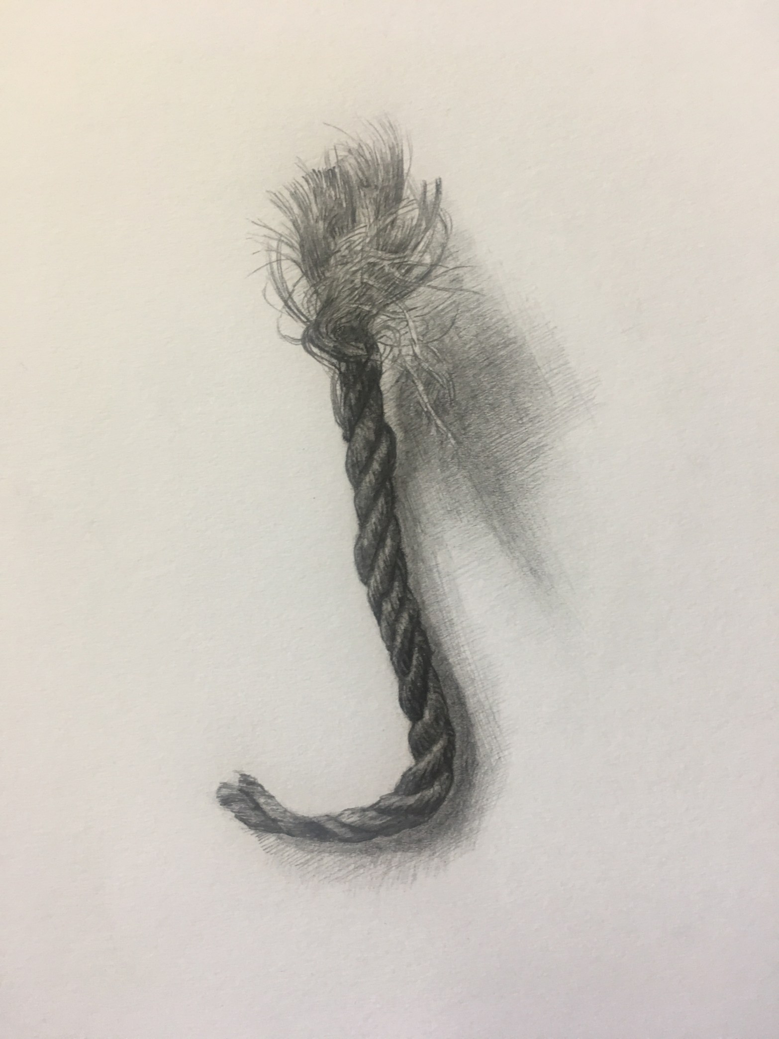 It was fun working on hemp rope as the small detail was not eye catching at all. But when you looked into it, you were able to bring out the absolute beauty of it by merely a pencil.