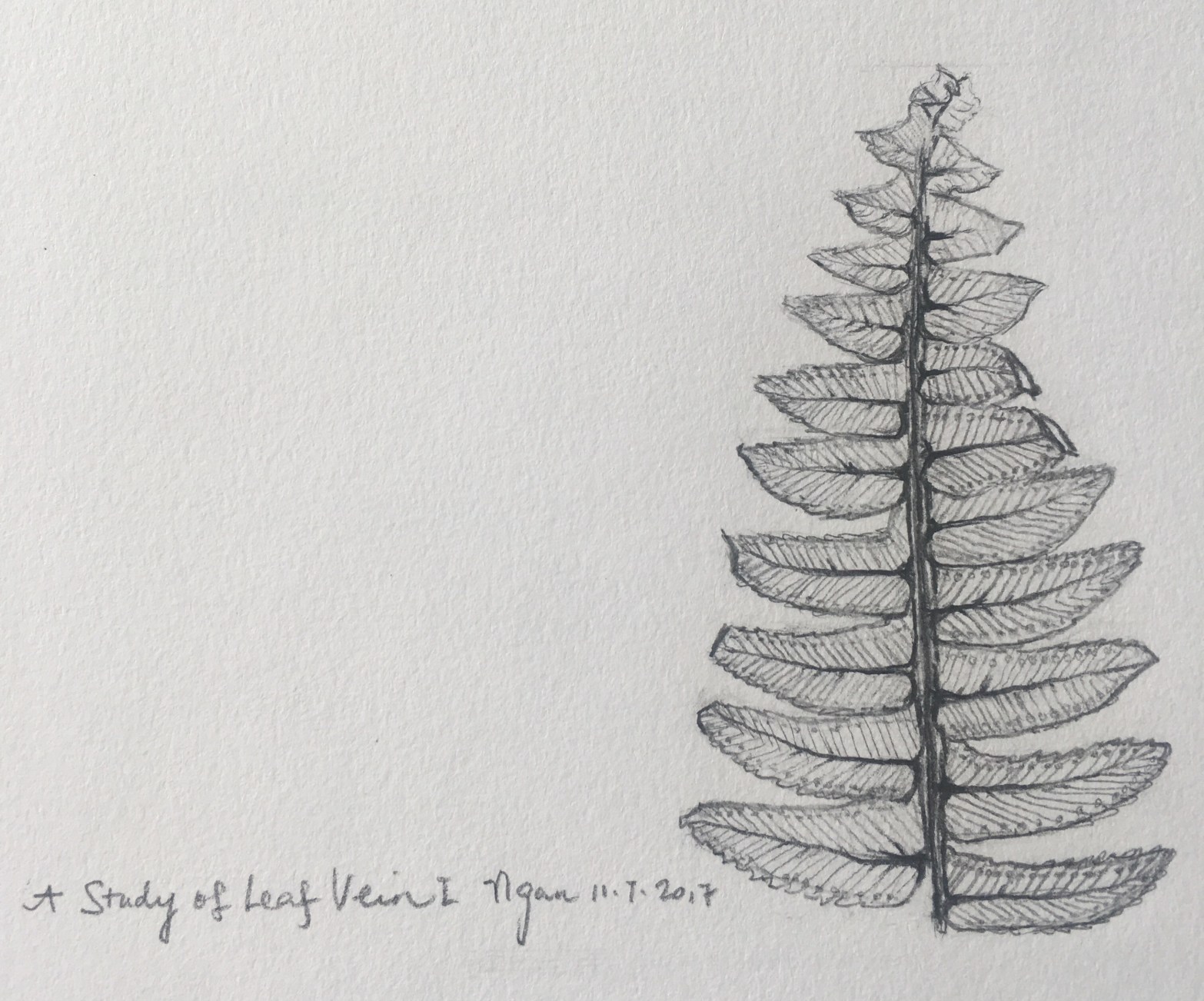 I continued my line drawing exercise with a closer look to the vein of leaves. It was amazing. Each leaf had their own network of vein. It reminded me of the road system. The internet. And all other fascinating system in our universe. What man made system was observed and borrowed from our Mother Nature and it would never be as sophisticated as the original one.