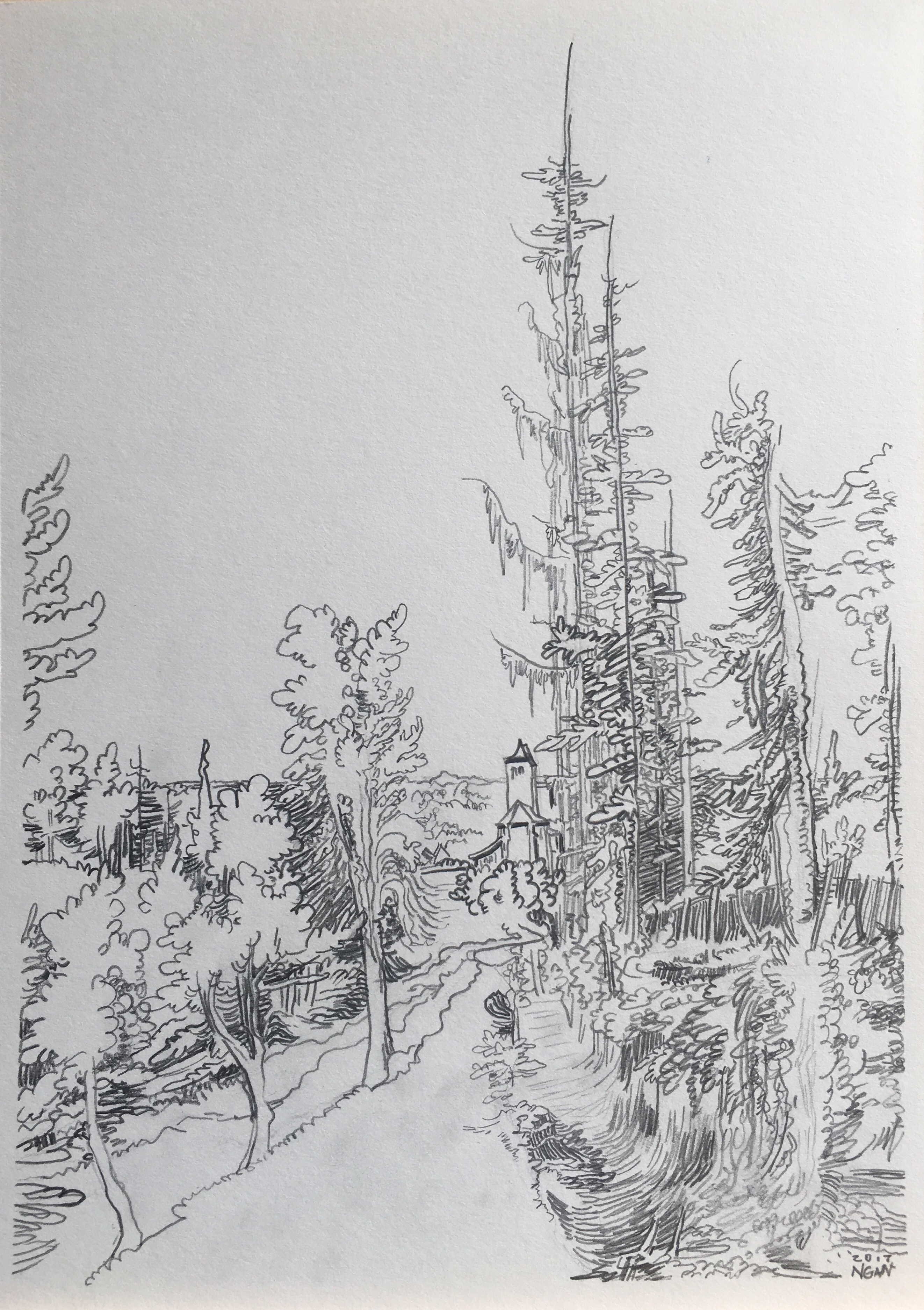 Drawing was sometimes more difficult than painting. When color value was very close and the structure of the landscape was not prominent, it was really patience which could me to complete a drawing.