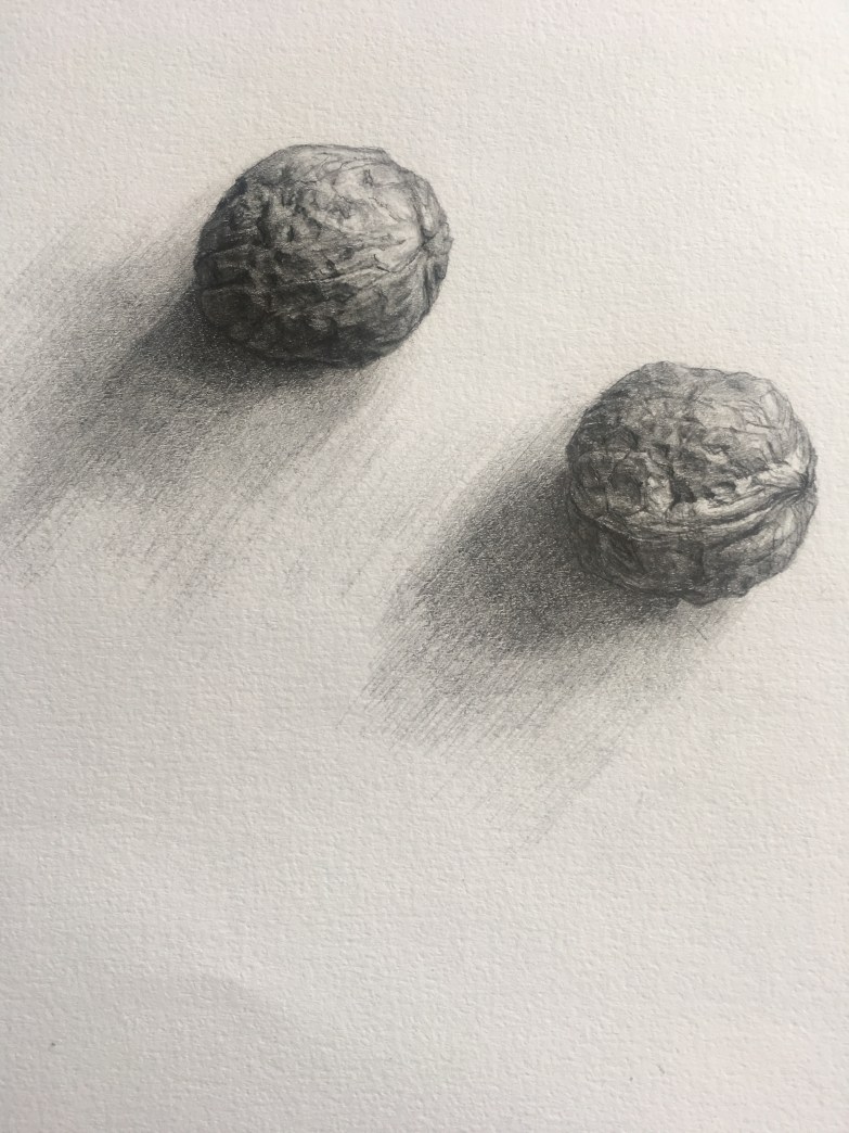 Pencil sketching on paper. 2cm x 2cm. June 16, 2017. Among my realism drawing training, walnut may be one of the hardest exercise. The detail was subtle and without logical pattern. Tone was close. It was also not easy to show the 3 demension. Yet it is fun working it.
